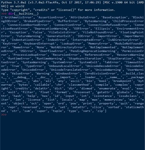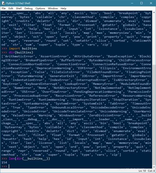 得到一个数字,154 ,说明当前版本的 Python 内置的常量和函数总数是 154 。