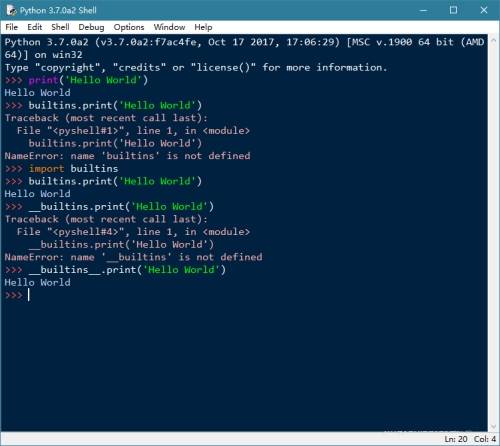 6)print() 就是 Python 3 的默认函数。我们试试: