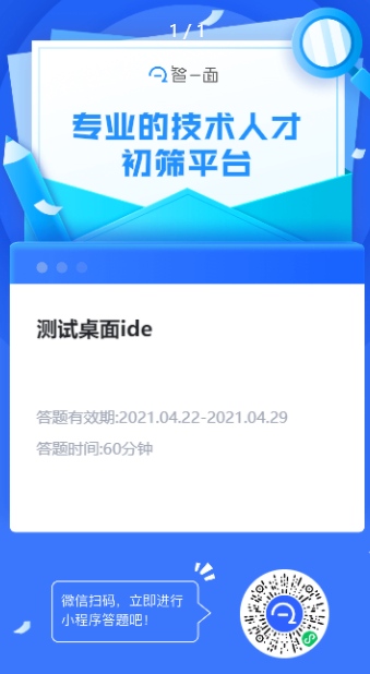 1.【智一面HR企业版小程序】帮助中小企业身兼多职且工作任务繁重的HR解决“技术招聘筛选难”的问题,HR在招聘技术人才时,通过该小程序发测试题目给求职者,求职者通过接收的链接或者二维码答题,这种方式可考察求职者对求职岗位的技术知识掌握情况,起到初筛的作用。