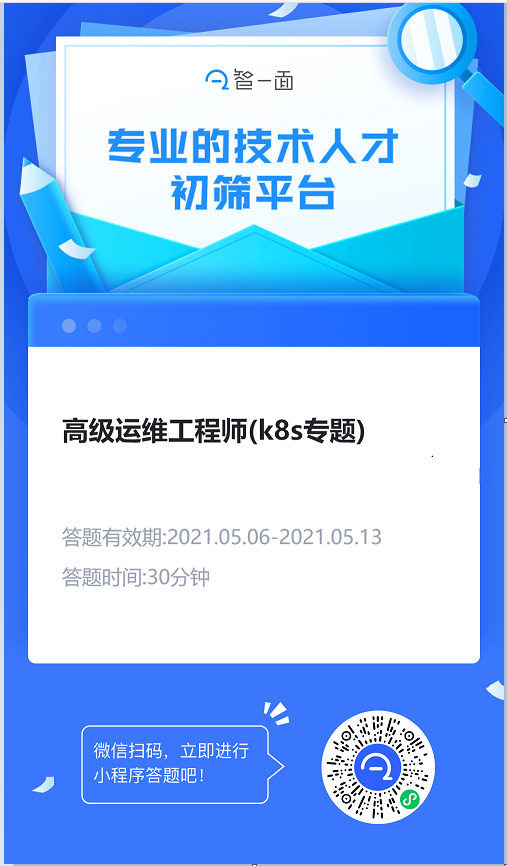 docker通常在中高级运维工程师的日常工作中用到的非常多,如果你想验证下自己的运维技能到底处于哪个水平,下面有一套关于docker和k8s的高级运维题,直接微信扫码或者复制下方链接就能答题,大家如果感兴趣,可以进去看下,友情提示,先不要百度!不然就失去了意义!把不会的记录下来,然后再去搜索引擎解惑!