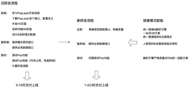 注:PopLayer是以端侧中间件为核心进行建设的,其中每个环节都有比较复杂的链路可以展开,本文不展开讨论端侧细节,主要讨论研发效率方面。