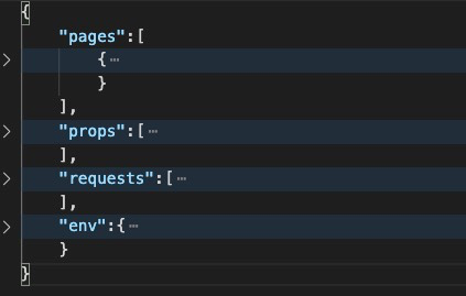 Pop的DSL格式为常用的JSON格式。其整体结构为pages-UI动线、props-变量解析、requests-请求接口、env-环境全局配置。