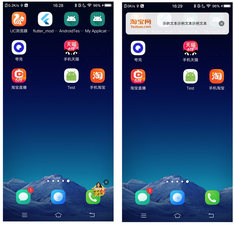 对于手淘这样日活流量足够大的APP,其Android桌面的触达流量价值同样是巨大的。相比APP站内的Pop触达,其更加拥有包括加强唤端、二方流量交换这样的独特价值。在有规则规范的前提下,我们可以通过端侧中间件建设,把Pop搭建的能力无差别的输出到桌面环境,使其成为Pop触达生态的一环。其具体的触达形态,则可以是顶部消息、挂角提醒等。其底层实现方案为Android悬浮窗。