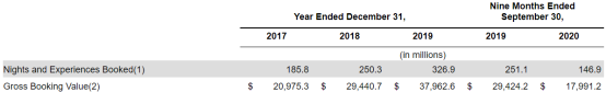 然而,突然爆发的疫情使得爱彼迎2019年前新增的投资付诸东流。疫情下人们对于旅游短租和社交的需求急剧下滑,令公司业务遭遇冲击,企业经营一度到了生死存亡的关口,数据显示,2020年1-9月公司净预订的夜晚和体验数为1.47亿,同比下降41%;总预订价值(GBV)为180亿美元,同比下降39%。此外财报同时显示,2020年1-9月,爱彼迎净亏损6.969亿美元,同比亏损翻倍。即使公司缩减规模,例如将1-9月广告支出同比减少4亿美元,且解雇1/4的员工,利润面仍然在持续恶化。