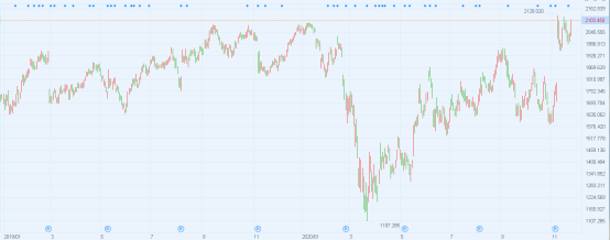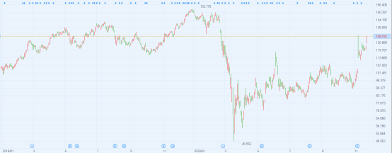 2019-2020年Booking Holdings(上)和万豪酒店(下)股价走势图